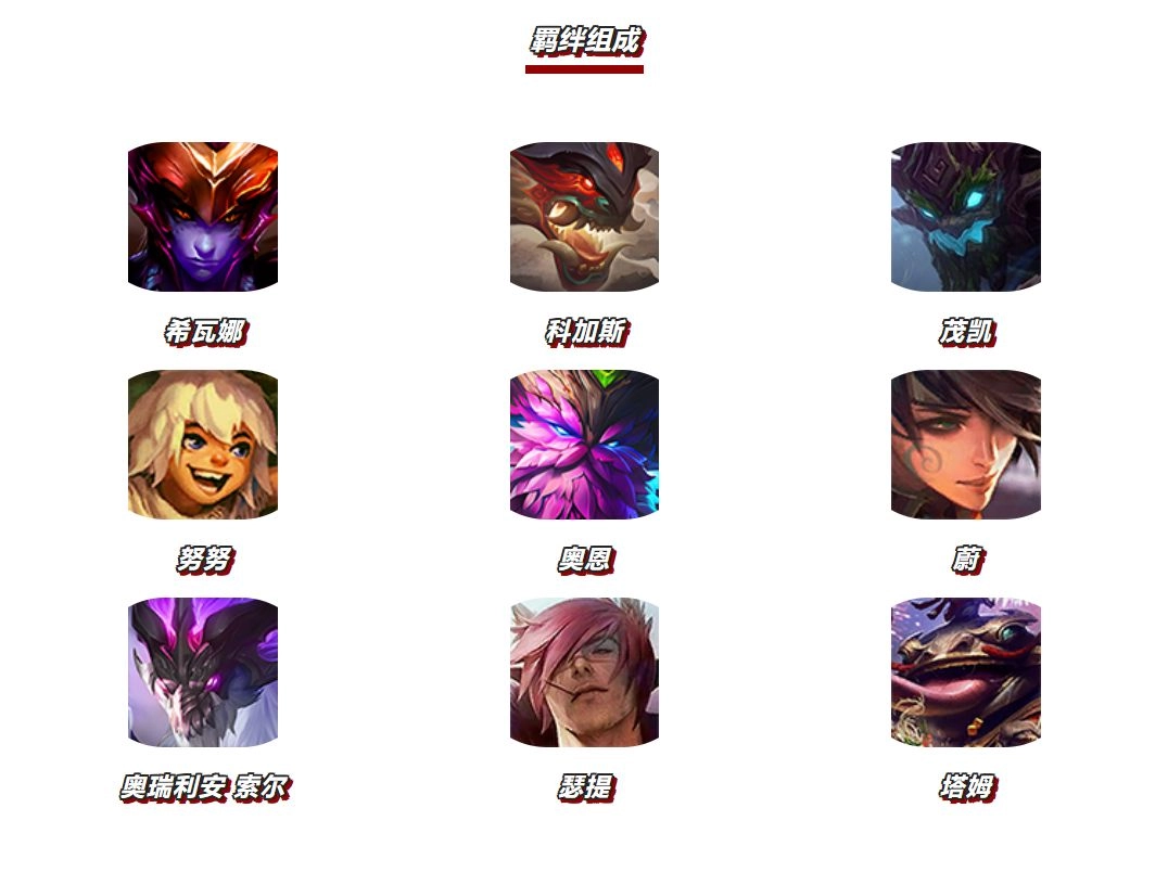 前期既可以选择带有任意斗士天选属性的弈子,也可以选择永恒之森天选的茂凯,然后搭配4斗士阵容,或者是3永恒之森阵容。后排方面,则可以用2神射手或者刺客来进行过渡。