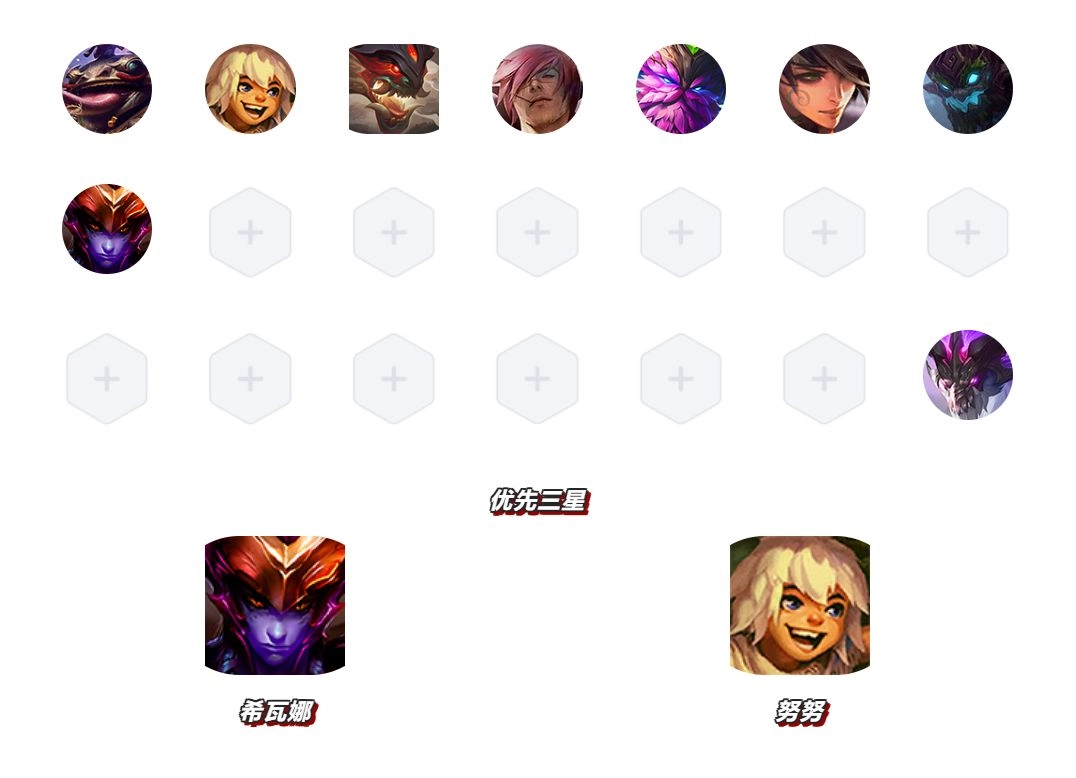 当达到7人口时,逐步把希瓦娜与努努升至三星,最迟要在5 - 5阶段前,将希瓦娜升为三星。