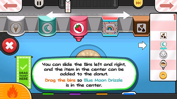 6、完成甜甜圈的制作后,将【订单】拖动至左侧,即可交付给顾客。
