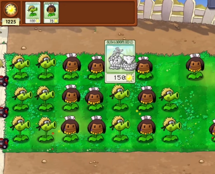 1、游戏里各类植物与僵尸进行了改版,采用了火影忍者风格的角色设计。