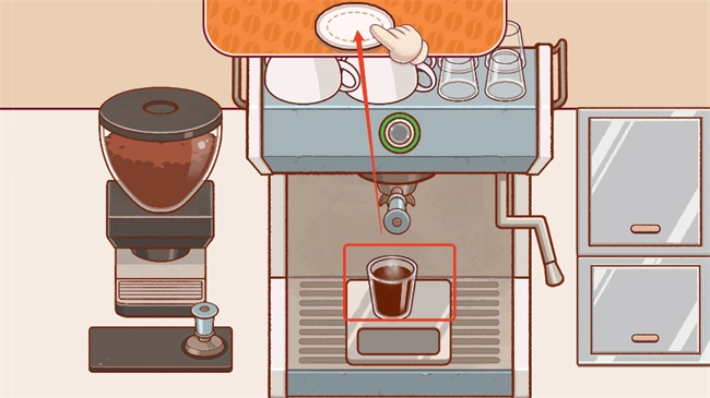 10、制作完咖啡后点击咖啡向上移动进行装盘