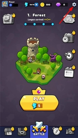 2、进入游戏之后,点击右上角的齿轮图标,随即进入设置菜单。游戏前期,应优先建造经济类建筑以积累资源;而到了中期,则需均衡建造攻击塔与防御塔。
