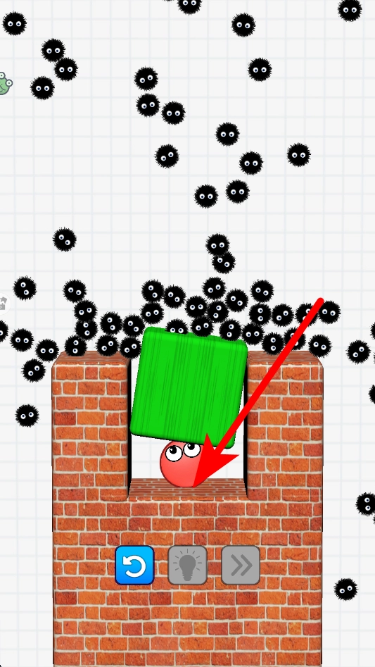 3、若碰到类似大量黑色小元素这样的特殊情形,借助移动之后的方块等元素,为小球给予保护或者营造有利环境,使小球处于安全区域。