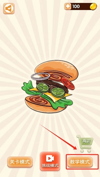 1、打开沙威玛汉堡店游戏,玩家可以先选择教学模式来进行游戏的学习。