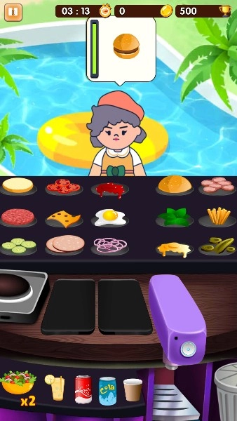2、透过完成顾客订单和达成小挑战,慢慢累积金币,逐步把你的汉堡小摊扩展成连锁大店。