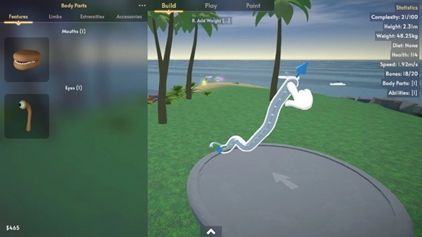 3、踏入构建界面,能够随心所欲地组合各类零件,塑造别具一格的生物形态。