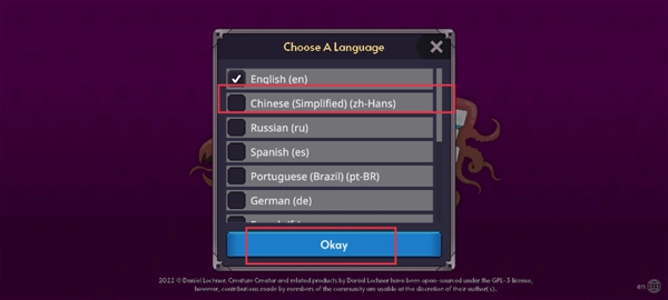 1. 进入游戏后,界面语言默认是英文,这时要点击右下角标有“EN”的地球形状图标,进入语言设置。