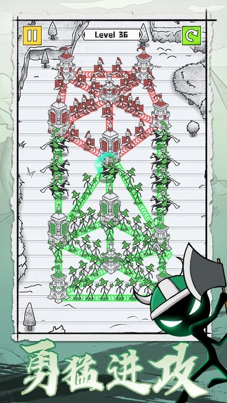 1. 通过连线把所有城堡连接起来,依据战斗局势的改变,随时做好随机应变的准备。要时刻留意周围敌人的行动,指挥自己的火柴人军团尽情展开自由冒险,从而解锁新的挑战任务。在这里,丰富多样的游戏内容都可以让你尽情体验。