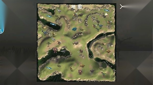 7、轻点右上角,便能打开地图,在此可查看物种图鉴、商店位置、坐骑情况以及房屋扩建等相关信息,白色光标所指之处即为自己的当前位置。