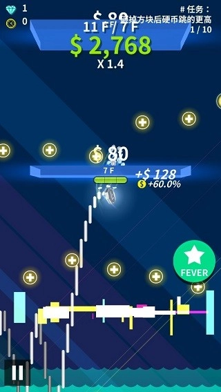 1. 轻点屏幕,让“硬币”持续跳动,避免落入水中。