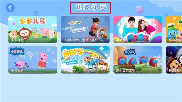 3、进入之后,这里呈现的是儿歌动画,小朋友们能够在此观看精彩纷呈的动画片。