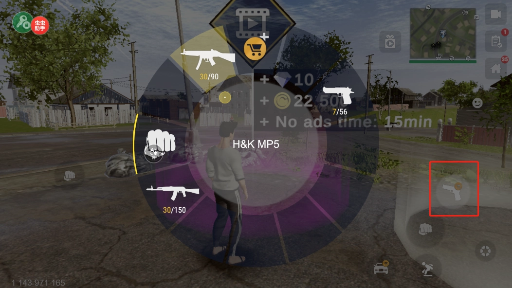 6、长按枪支按钮,在此处能够对枪支进行选择。