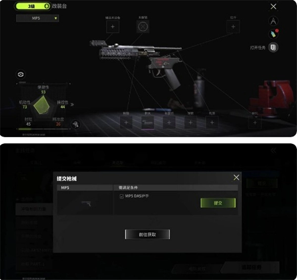当各位将改造台升至三级,领取枪械任务后,任务会要求上交某些特定枪支。此时,其实只需把枪拆解到仅剩一个架子,装上必需配件就能交差,多余的配件还能拆成铁片。(NPC会夸赞这把枪很棒,同时还会给你一把新枪。)在此建议等九级之后再做此任务,开启寄卖市场后,直接购买配件就很方便。