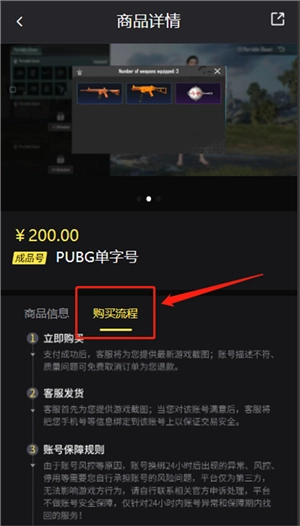 第四步:玩家在商品详情页能够查看具体商品信息与购买流程。