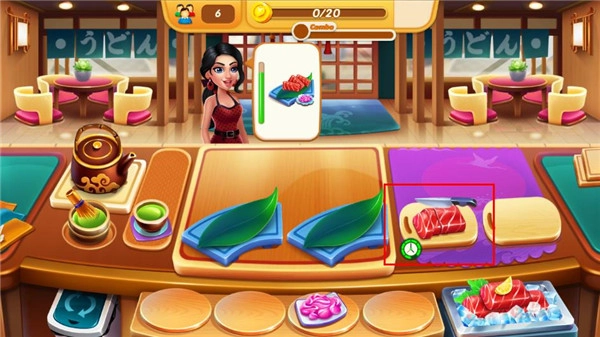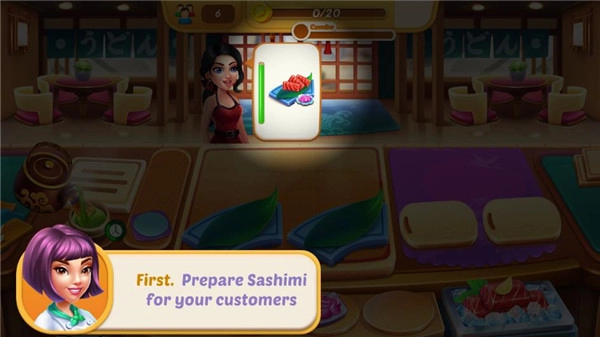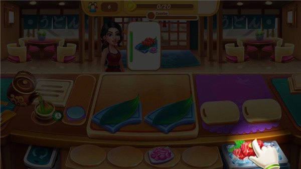 1、在本站点击安装并打开进入游戏,通过特色主题餐厅的美食展现您的烹饪技巧。当客人前来消费时,会产生对餐品的需求,玩家需依据这些需求制作美食。