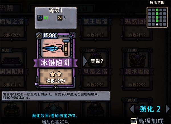 要是前面那些陷阱带来的凉意还不够,那就干脆直接用冰块把兽人给冻住!这招价格方面有点小贵,伤害效果稍低,却有着强力的硬控手段,只是攻击频率比较低。可惜不是所有兽人都能被冻成冰棍。它和“寒冰宝库”简直是绝配,必须牢牢绑定在一起!