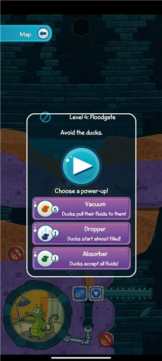 3、挑选自己想要挑战的关卡。如图所示,关卡分为两种模式:一种是正常玩法,需把水分给鸭子;另一种是不能让鸭子接触到水。