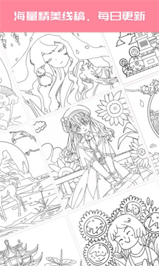 3、丰富线稿:无论是古风人物,还是可爱漫画,各类主题一应俱全。快来挑选你心仪的主题,开启涂色之旅吧。