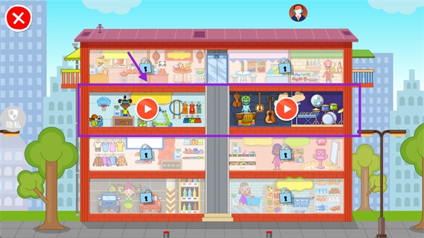 2. 根据个人喜好挑选店铺(比如运动店、乐器店),然后进店探索。
