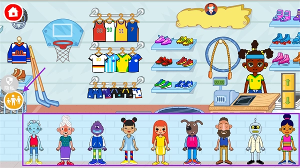4、点击屏幕左下角的角色按钮,然后拖动角色进入店铺进行互动。