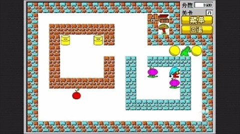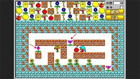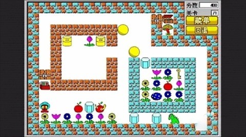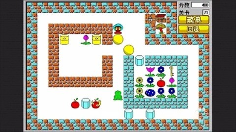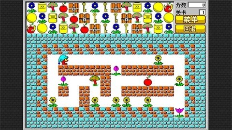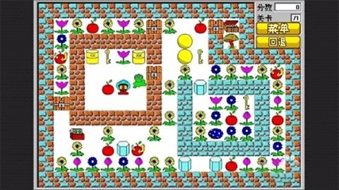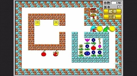 3、玩家可操控小人,把苹果推到盛开的食人花附近。等食人花把苹果吞下后,小人再经过就不会被吞食。最后,只要成功采摘到蘑菇,就能通关。