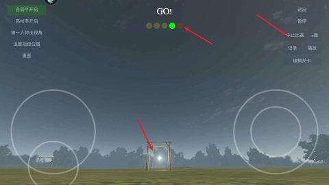 4、在右上角能够开启计时赛,开始之后会出现光点,只要穿过全部光点就算完成。