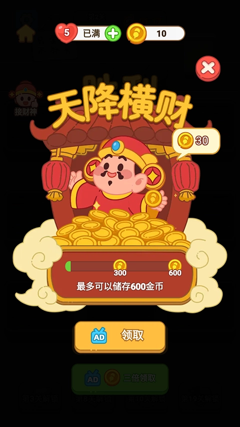4、此外,缺少金币的玩家还能够借助财神获取更多金币。