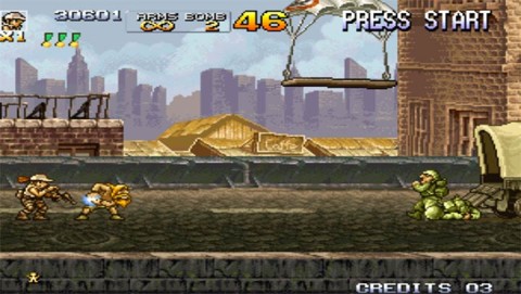 1、在本站获取合金弹头4手机版游戏文件,运行该文件后,通过按屏幕上的投币按钮跳过动画。