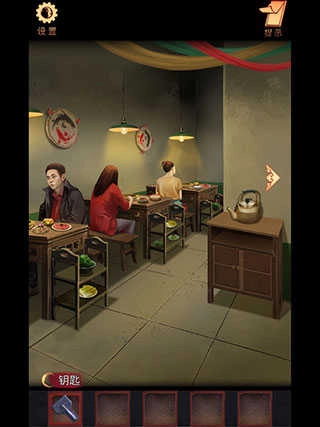 1. 用【钥匙】打开正对面柜子的锁,接着拿【油勺】舀取一勺油。