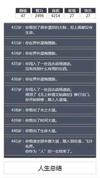此外,游戏提供了丰富有趣的天赋,像豪门贵族、聪明生财、帅气逼人等。玩家可以挑选心仪的天赋开启游戏,还能分享给亲朋好友,瞧瞧他们在此次人生中会收获怎样的结局,趣味十足。倘若再给你一次机会,你会过上怎样的人生呢?快来一起体验全新人生吧!