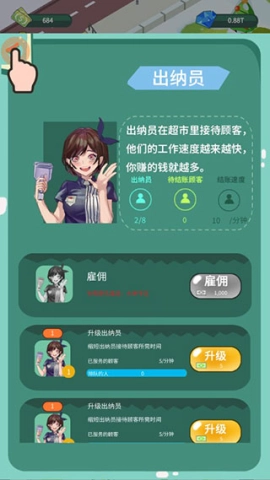 3、员工管理系统,可招募各岗位员工,即便处于离线状态,依旧能够获取收益,助你从容应对生意的波动。