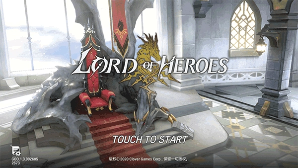 1、打开英雄之王最新版本的游戏界面,轻轻点击“TOUCH TO START”,就能开启旅程。