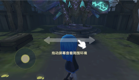 2、进入游戏后,滑动屏幕可以转换视角,触控摇杆可以控制人物移动;