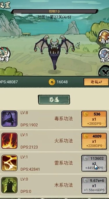 3、玩家可以收集天地之气,自行领悟或组合技法,定制专属修炼路线;