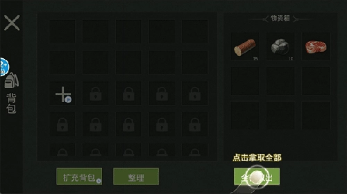 2、接下来,在箱子里寻找到“全部拿出”选项并点击,之后再点击左边的×选项返回。