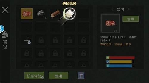 4、接着,从背包里取出武器。