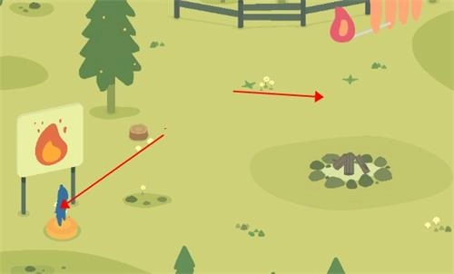 5、拖动屏幕,将其扔进指定区域,如法炮制,将3根木头全部扔进去