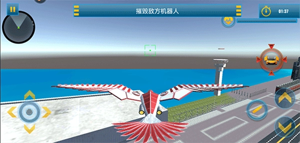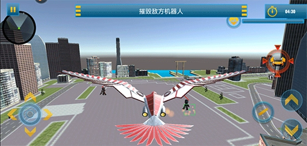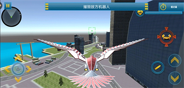 1. 进入游戏后,在操控机甲鹰移动过程中,可借助屏幕左侧的虚拟摇杆来调整方向,屏幕右侧的控制键则用于控制高度变化,需灵活把握飞行节奏。