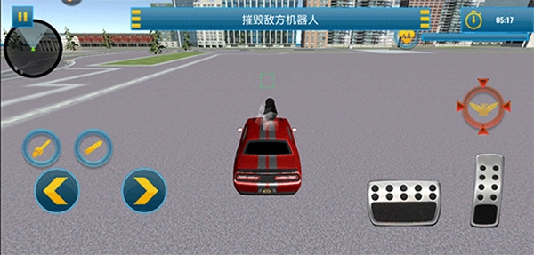 4、除空中作战外,点击屏幕上的汽车图标,即可切换至陆地形态。通过不同战斗模式,灵活应对敌方威胁,展开策略性更强的攻防对决。