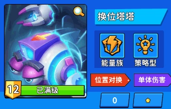 换位塔塔可以和相同星级的任意炮塔进行位置互换,在换位塔塔升级到满级后更能和比自己低星的任意炮塔进行位置互换。为了更好的进行buff添加我们可以通过换位塔将火焰塔放至场上最佳位置以使收益最大化,通常游戏场内路线转角处是很好的选择。