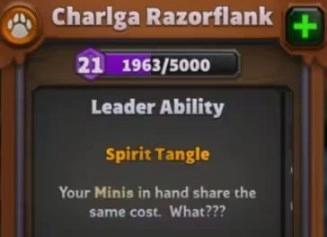 卡尔加·刺肋(Charlga Razorflank),这位角色在《魔兽世界》里,是身处剃刀高地的野猪人巫师。而在《魔兽弧光大作战》当中,卡尔加属于野兽种族的初始首领之一。她所具备的首领能力称作——灵魂探戈:能让你手中的卡牌拥有相同的费用。