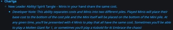 通常而言,在游戏里仅有一个卡牌队列,卡牌的费用作为卡牌的一项属性,与卡牌紧密相连。然而,卡尔加的首领能力却是创建一个费用队列,将卡牌的费用从卡牌属性中分离出来,独自构成一个队列。