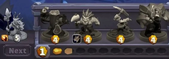 花费1费召唤出联盟步兵后,此时剩余费用为4费,下一次行动所需费用为5费。