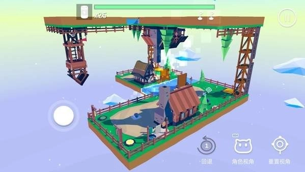 8、当前面临的问题是如何抵达下平面河的对岸。经观察可知,需踩踏下平面的两个按压机关,如此便能将桥连接起来!