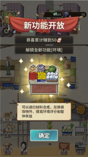 5、材料合成:广泛收集各类材料,通过合成打造出独具特色的装饰物,以此优化市场环境,让你的市场绽放出更加耀眼夺目的光彩。