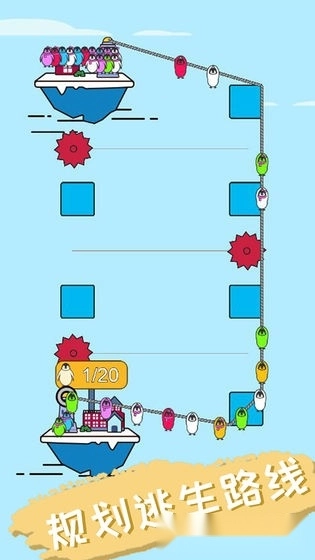 瞧,那些可爱的小企鹅被困在了高高的平台上,亟待救援。玩家需要巧妙地用绳索连接救援点,在牵引绳索的过程中,充分利用途中的物体,精心构建出一条安全通道。接着,按住相关操作,让小企鹅们依次顺着绳索,顺利去往救援点。不过,可千万要留意途中那些各式各样可怕的陷阱机关呀!