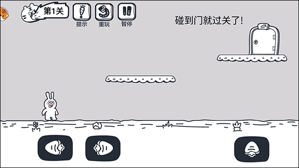 2、第一关相对简单,只需进行两次跳跃,抵达最高处的门即可。
