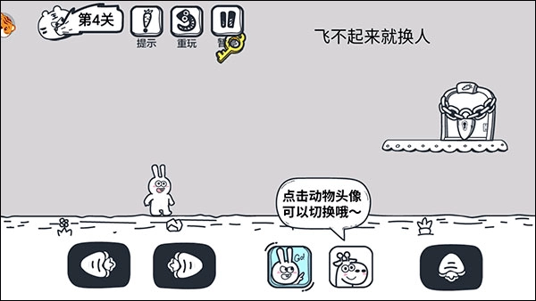 5、部分关卡需要多名动物伙伴相互协作方可通过,点击下方头像就能切换角色。