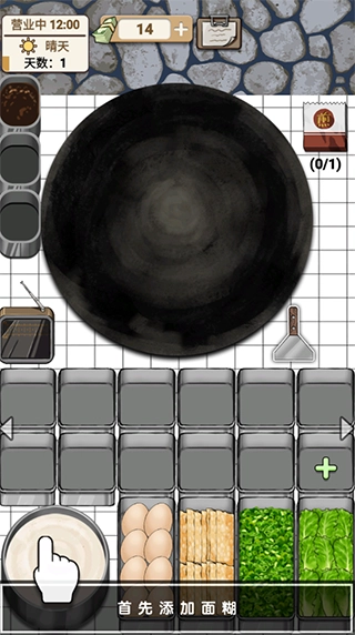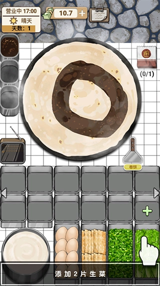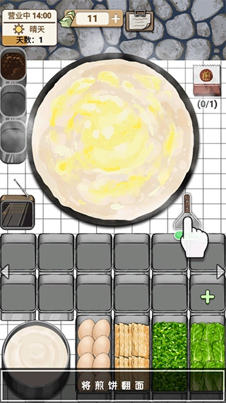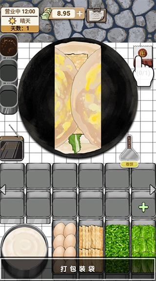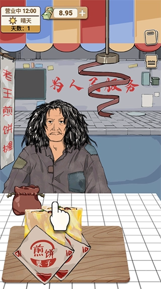 1、在游戏里,你扮演煎饼果子摊的摊主,会碰到形形色色要求刁钻的客人。比如,有的客人会说“煎饼果子不要煎饼”,还有的客人会提出“煎饼果子加一百个鸡蛋”之类的要求。你需要依据客人的这些需求,做出能让他们满意的煎饼。