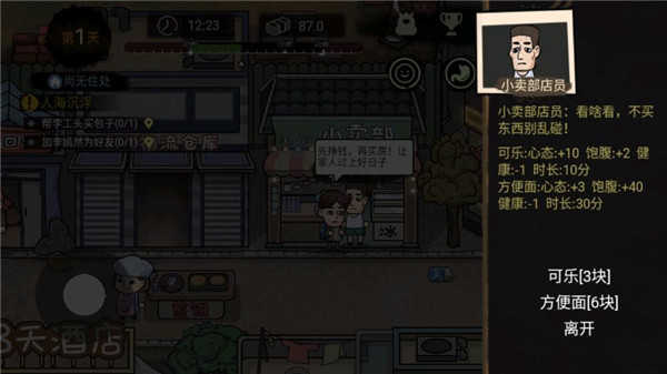 1、要是饿了,别在路边买东西吃,花5块钱只能增加15点饱腹感。建议去小卖部买方便面,只需6块钱,就能增加40点饱腹感,同时还能提升3点心态,运气好的时候,说不定还能得到火腿肠或者鸡蛋呢。